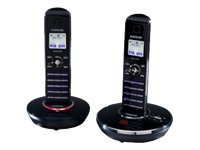 Schnurloses DECT ECO Mode Telefon mit zweitem Mobilteil, SMS, Freisprechen und beleuchtetem Grafik-Display sowie digitalem Anrufbeantworter